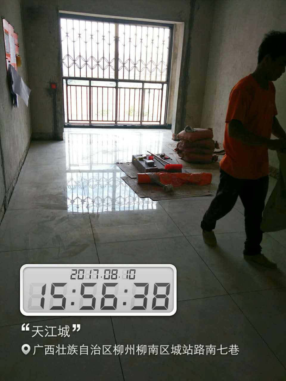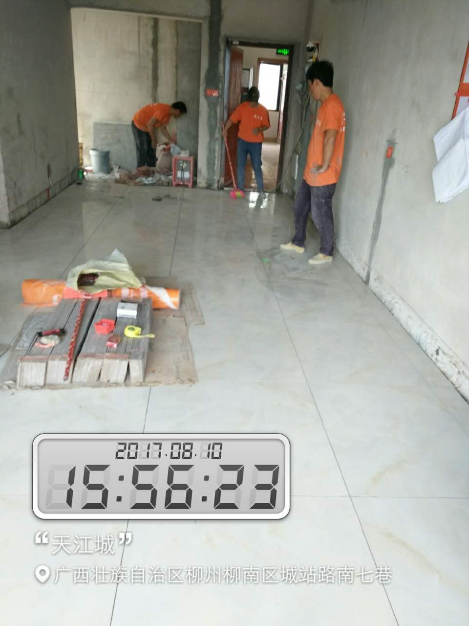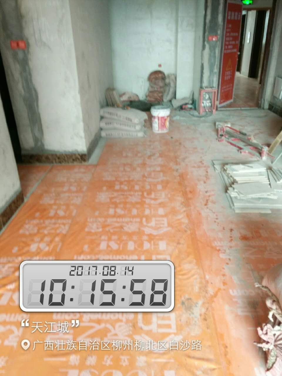 瓦工施工,平整對縫,鋪貼完畢即刻進行成品保護,鋪好地膜。