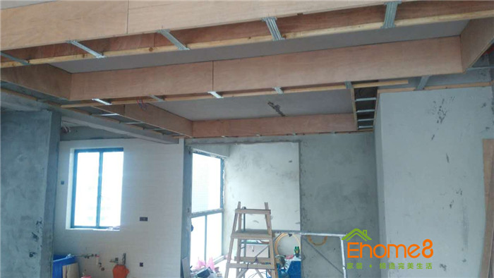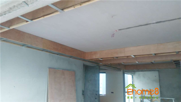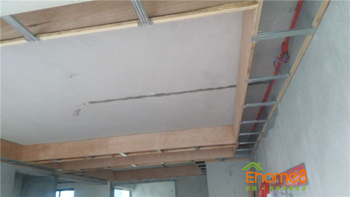 采用輕鋼龍骨搭建吊頂框架,吊桿50公分,主骨40公分,副骨30公分