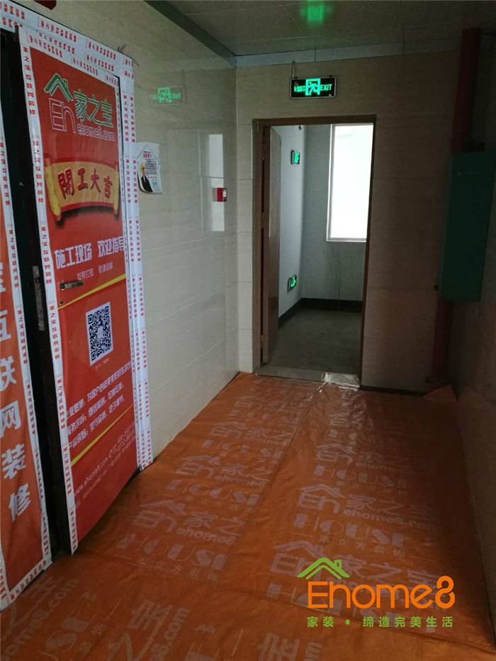 墻磚鋪貼,使用水平儀投射水平線,陽角處采用磨邊45°碰角工藝