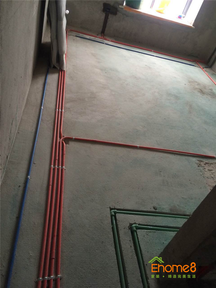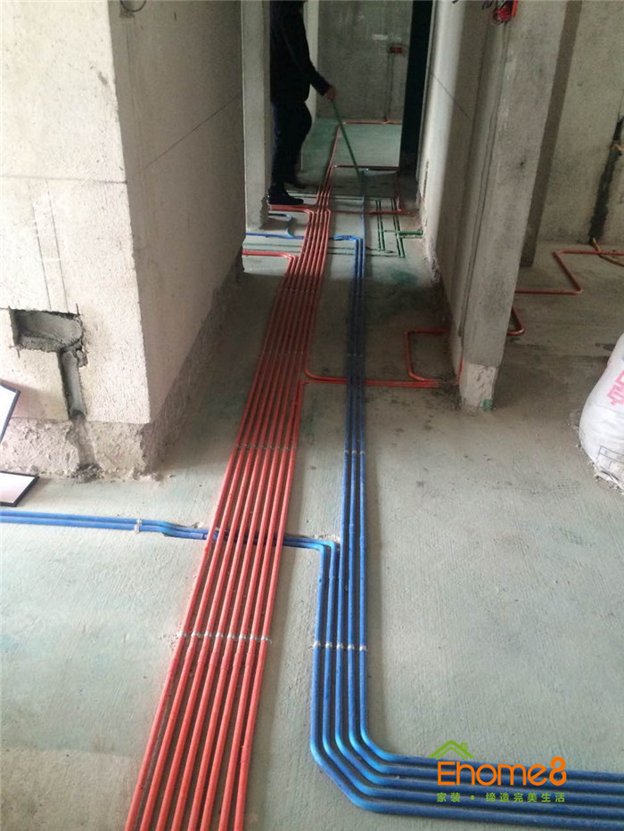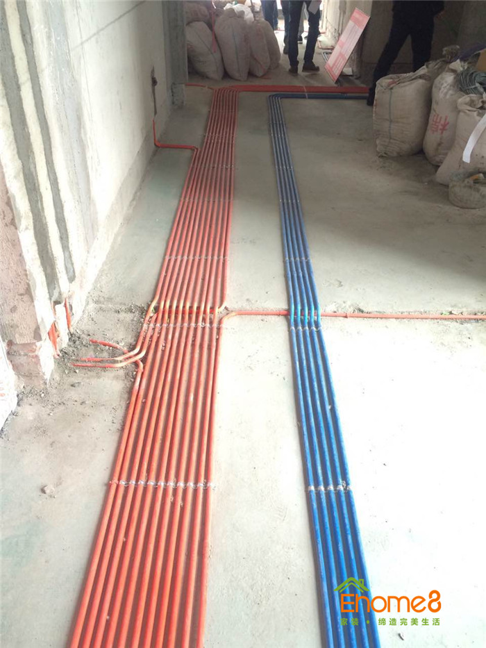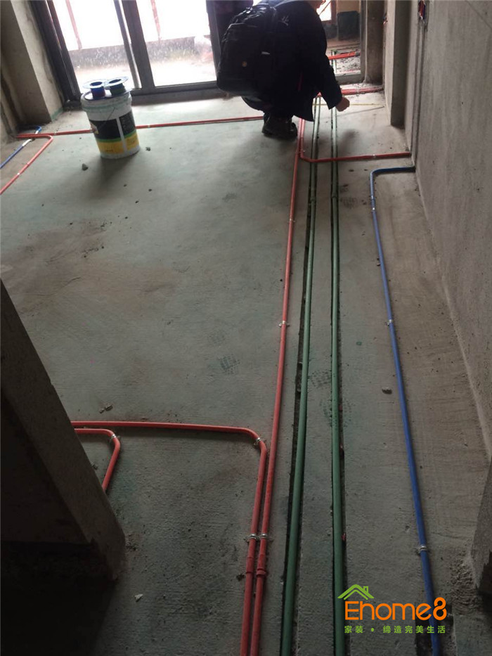 單管單槽,按國標工藝走線管水管,橫平豎直,八字拐角,采用德系歐標的水電材料