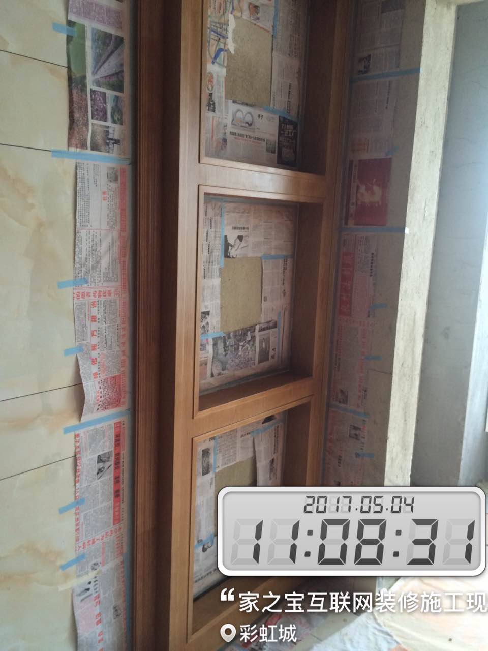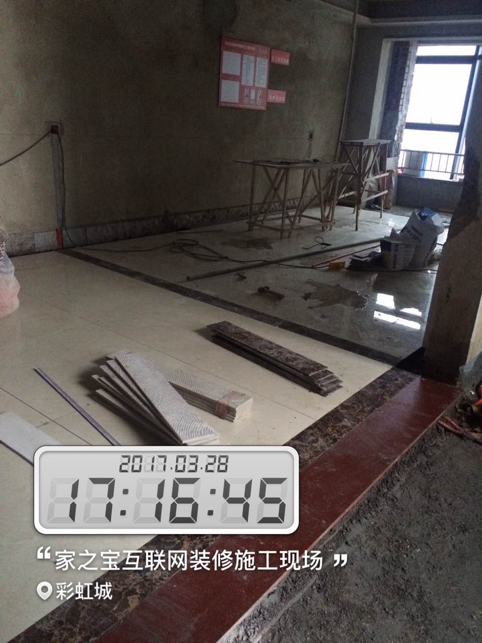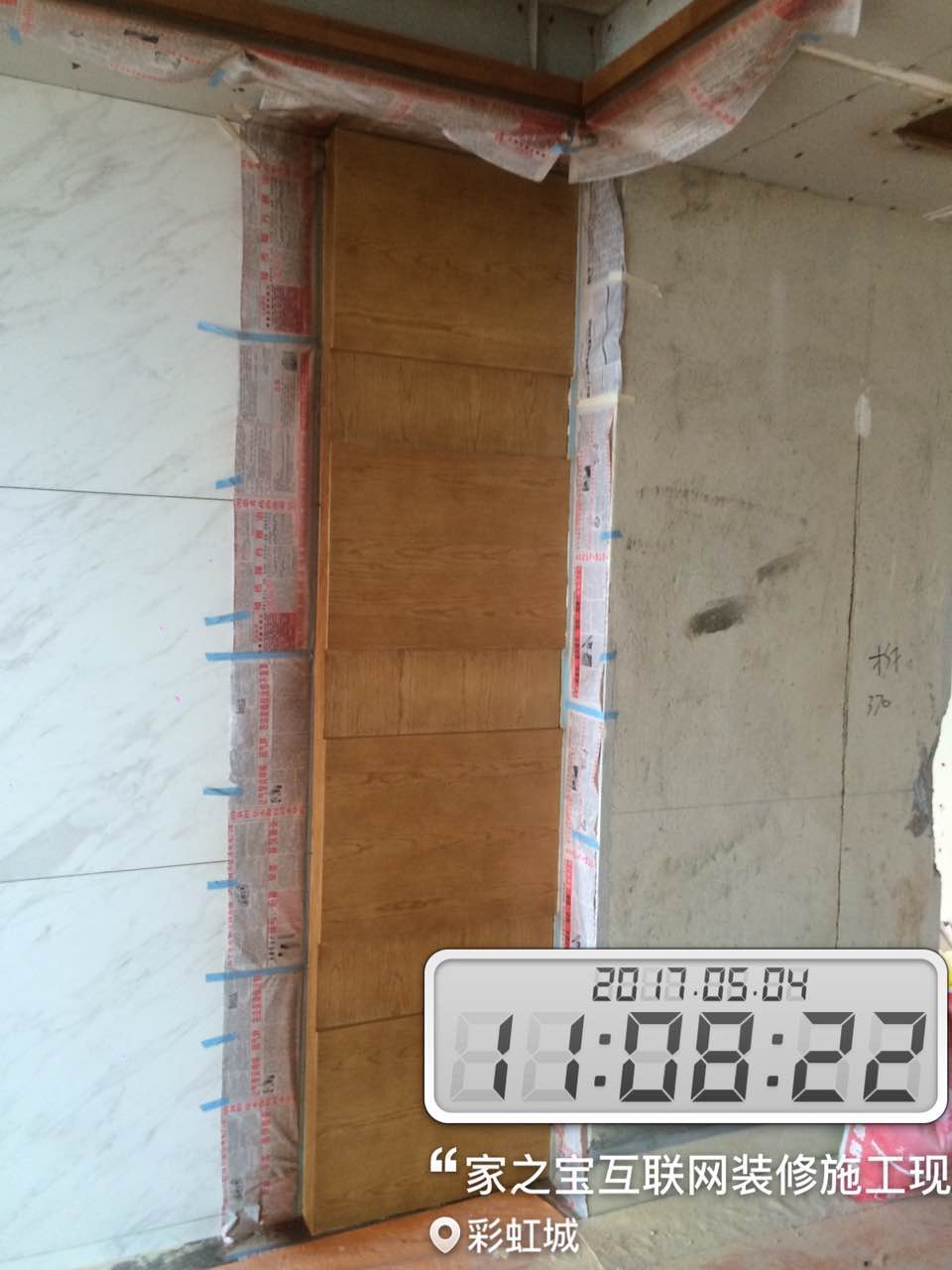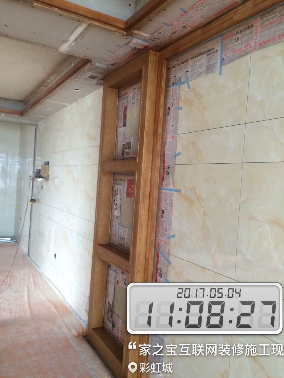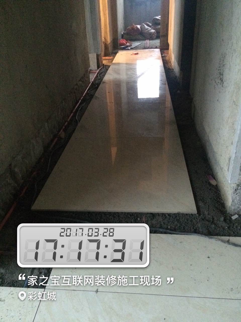 瓦工施工,平整對縫,鋪貼完畢即刻進行成品保護,鋪好地膜。