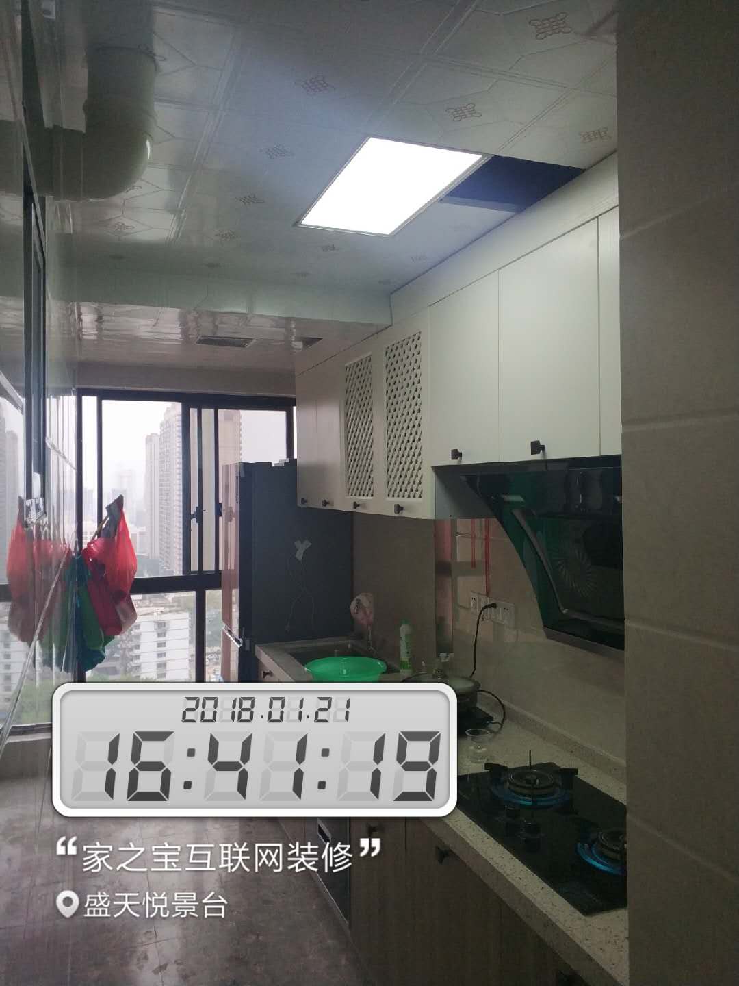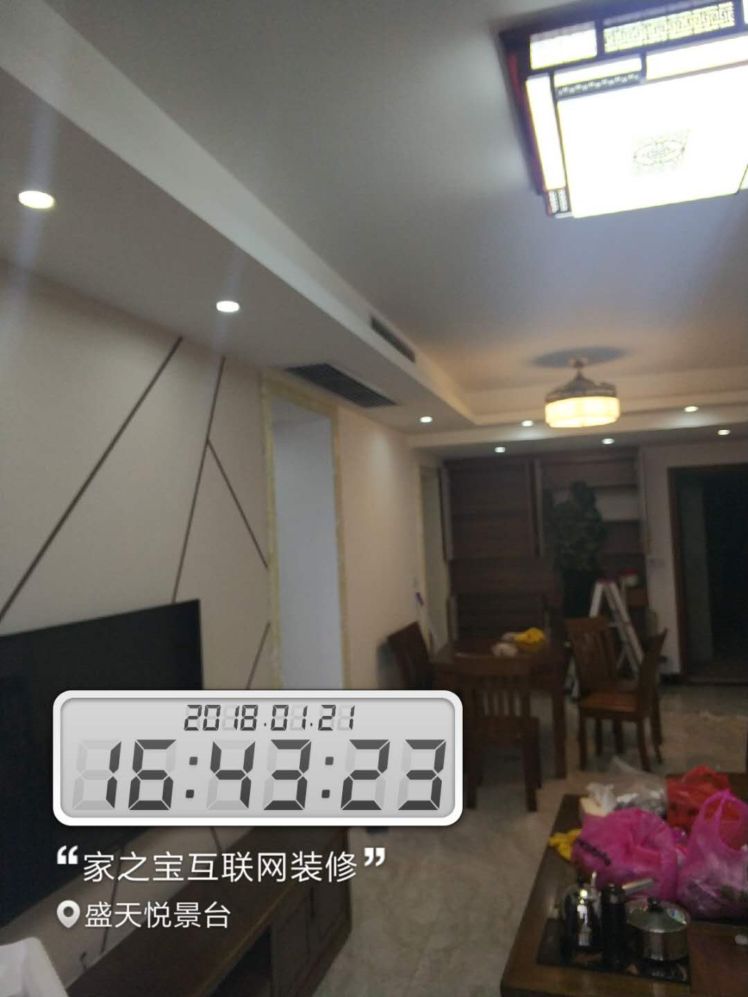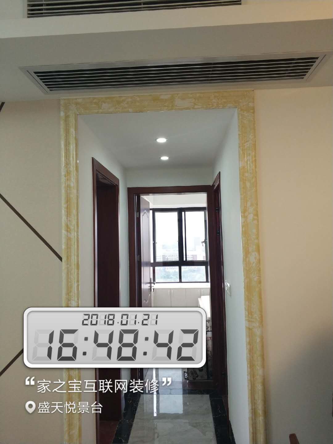 墻磚鋪貼,使用水平儀投射水平線,陽角處采用磨邊45°碰角工藝。