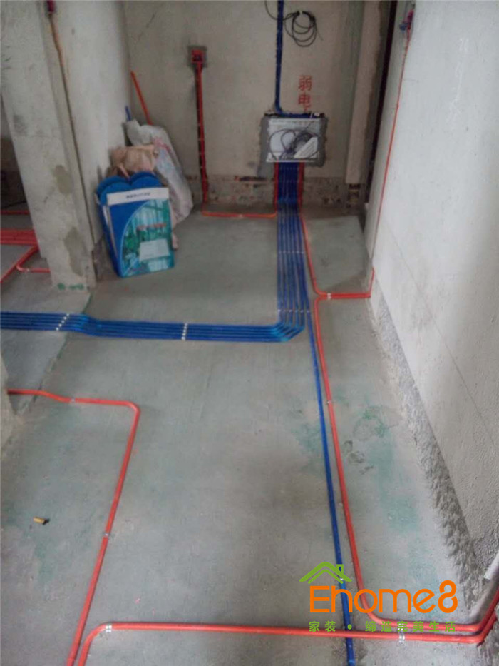 單管單槽,按國標工藝走線管水管,橫平豎直,八字拐角,采用德系歐標的水電材料