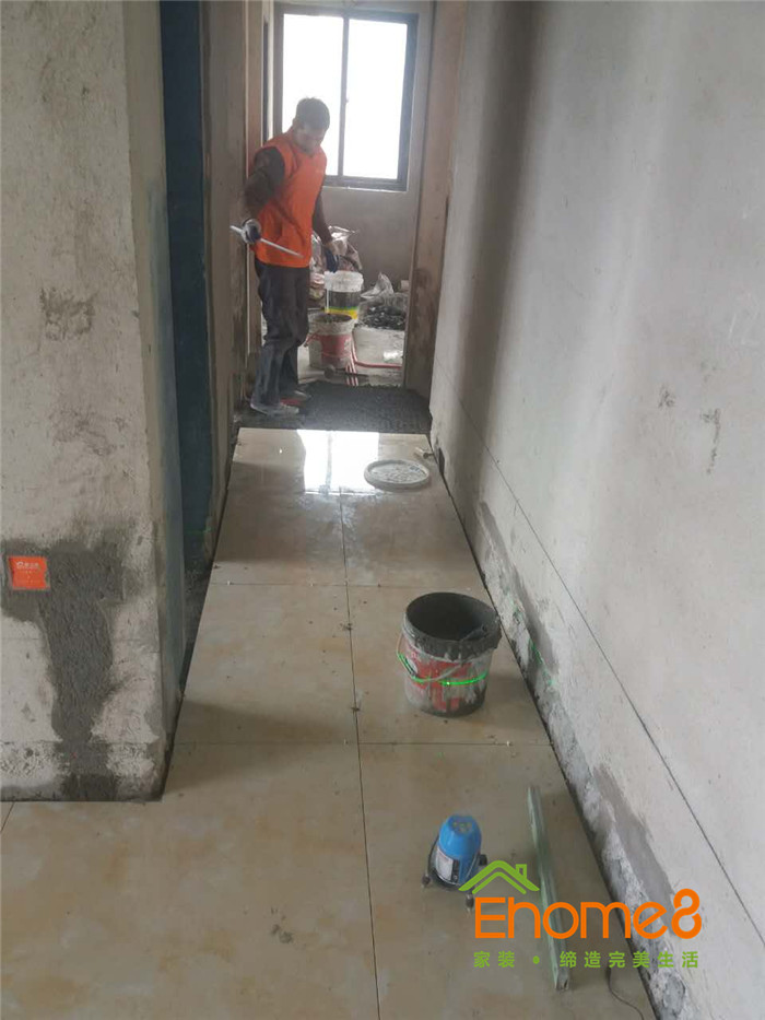 瓦工施工,平整對縫,鋪貼完畢即刻進(jìn)行成品保護(hù),鋪好地膜。