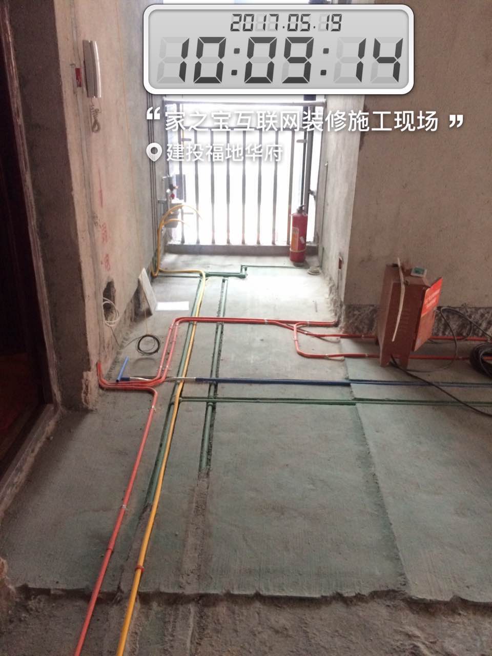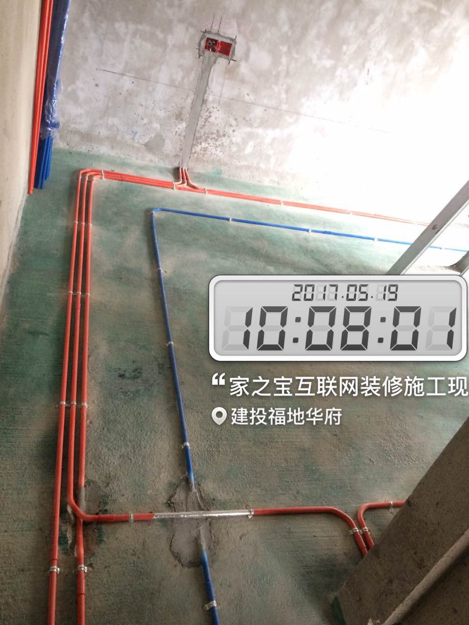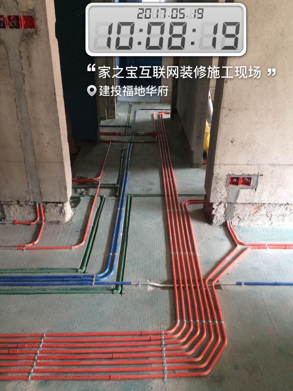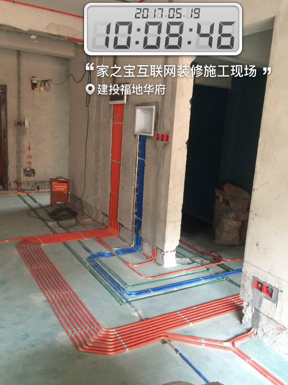 因前期拆改較多,耽誤些工期。水電施工,單管單槽,按國標工藝走線管水管,采用德系歐標的水電材料
