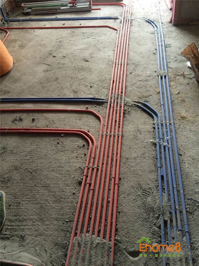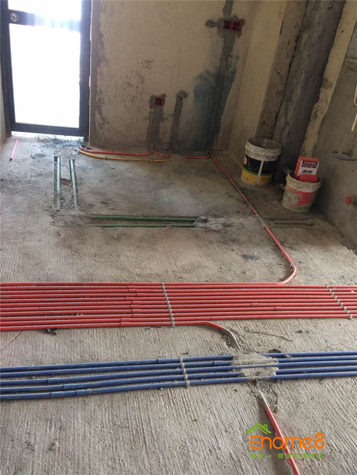 水電施工,單管單槽,按國標工藝走線管水管,采用德系歐標的水電材料