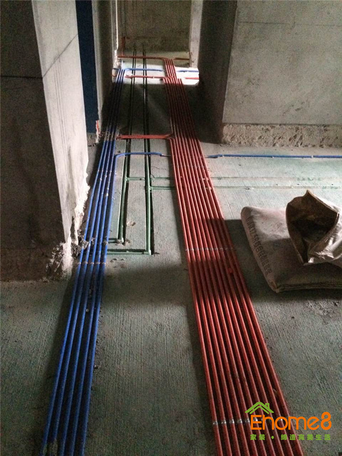 水電施工,單管單槽,按國標工藝走線管水管,采用德系歐標的水電材料