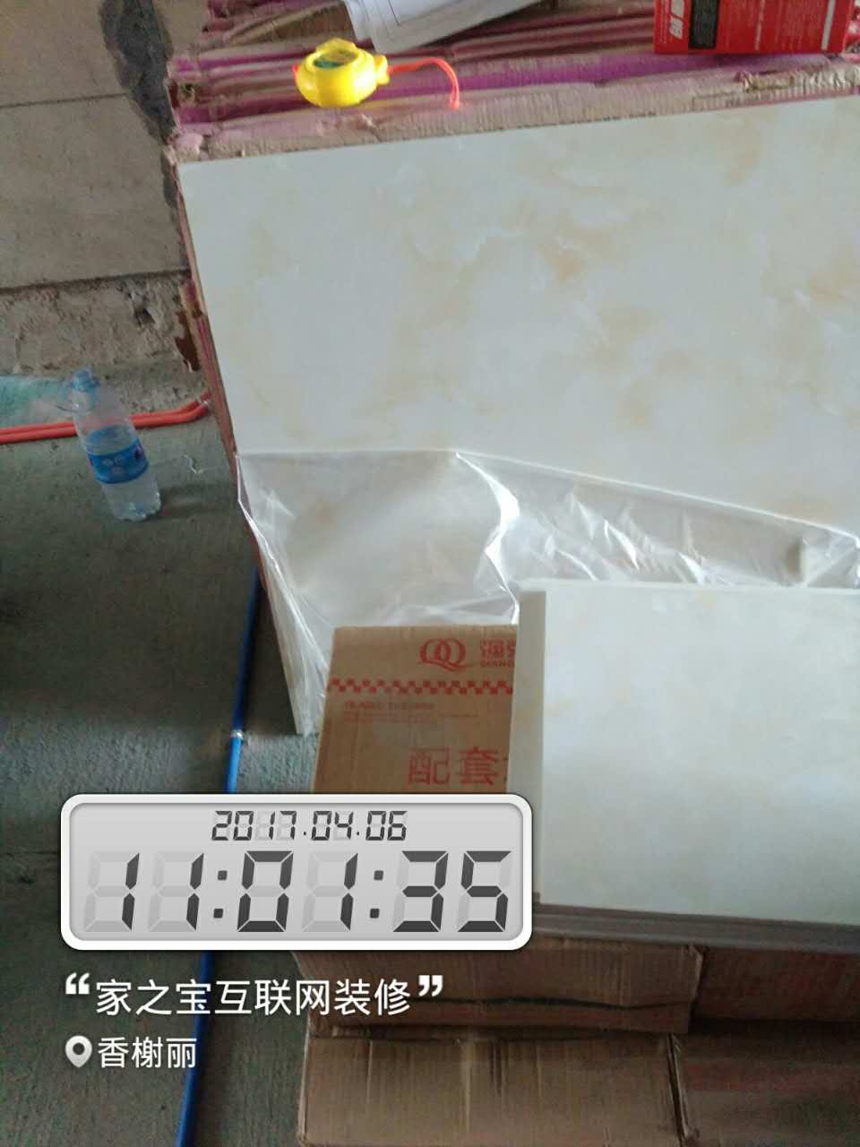 瓷磚材料從3月27日開始進(jìn)場,過完清明節(jié),4月6日瓦工師傅進(jìn)場,進(jìn)行瓦工施工。