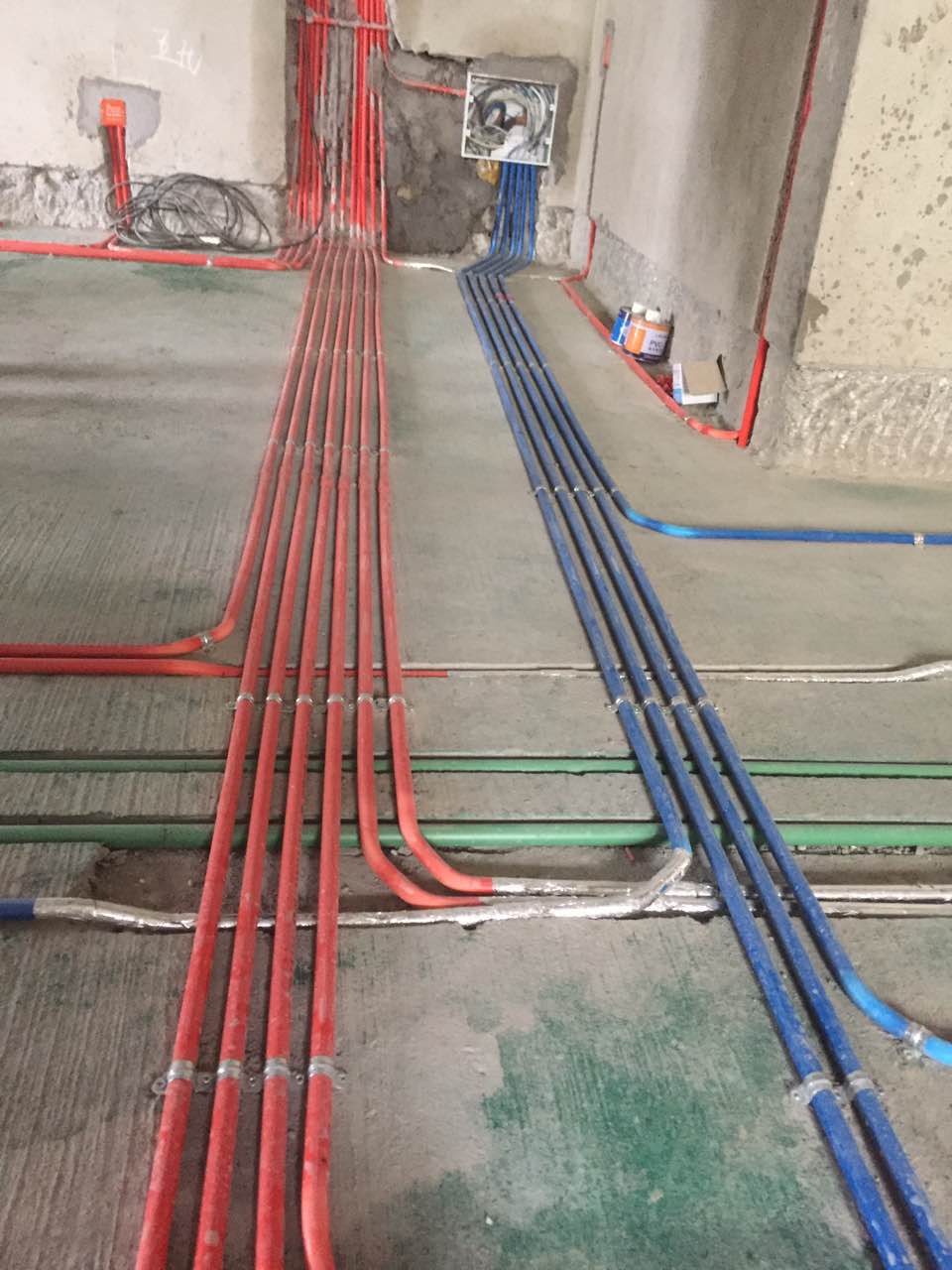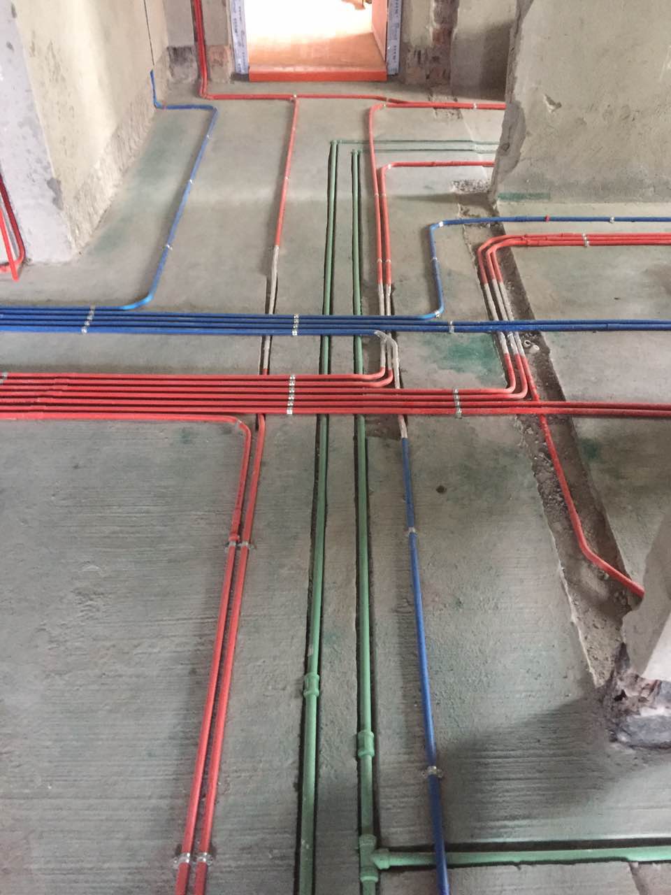 單管單槽,按國標工藝走線管水管,橫平豎直,八字拐角,采用德系歐標的水電材料