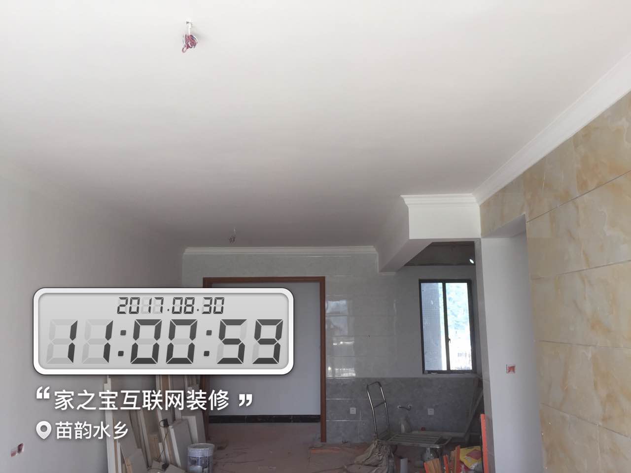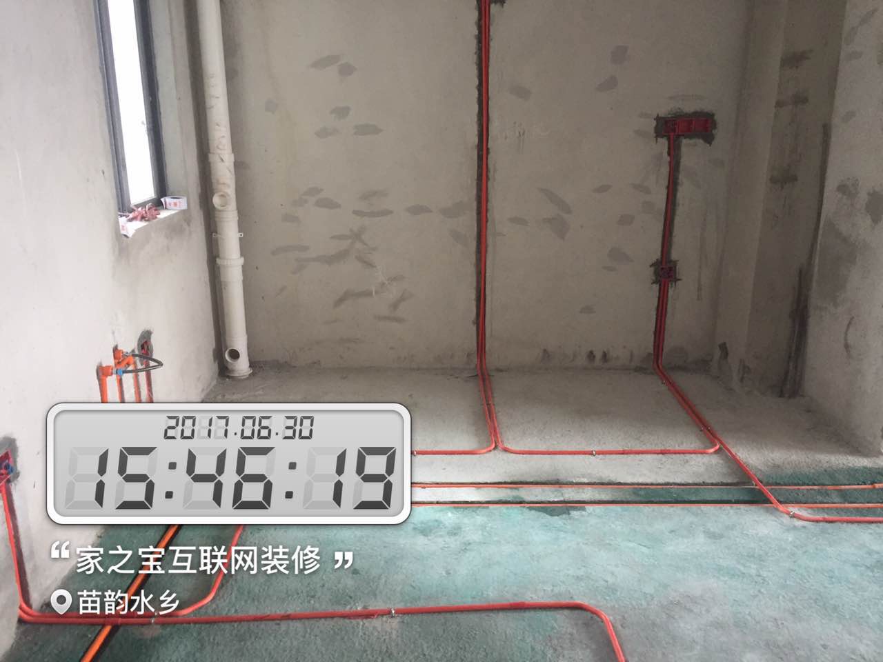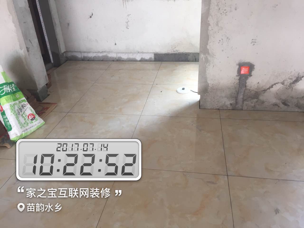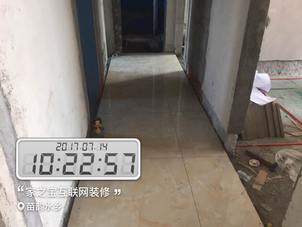 墻磚鋪貼,使用水平儀投射水平線,陽(yáng)角處采用磨邊45°碰角工藝。