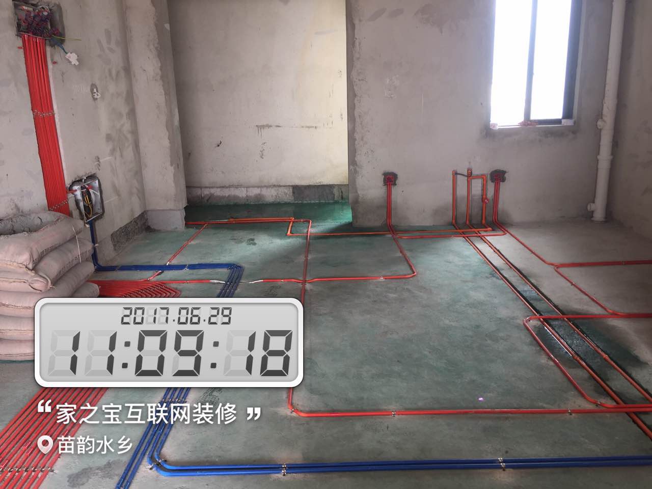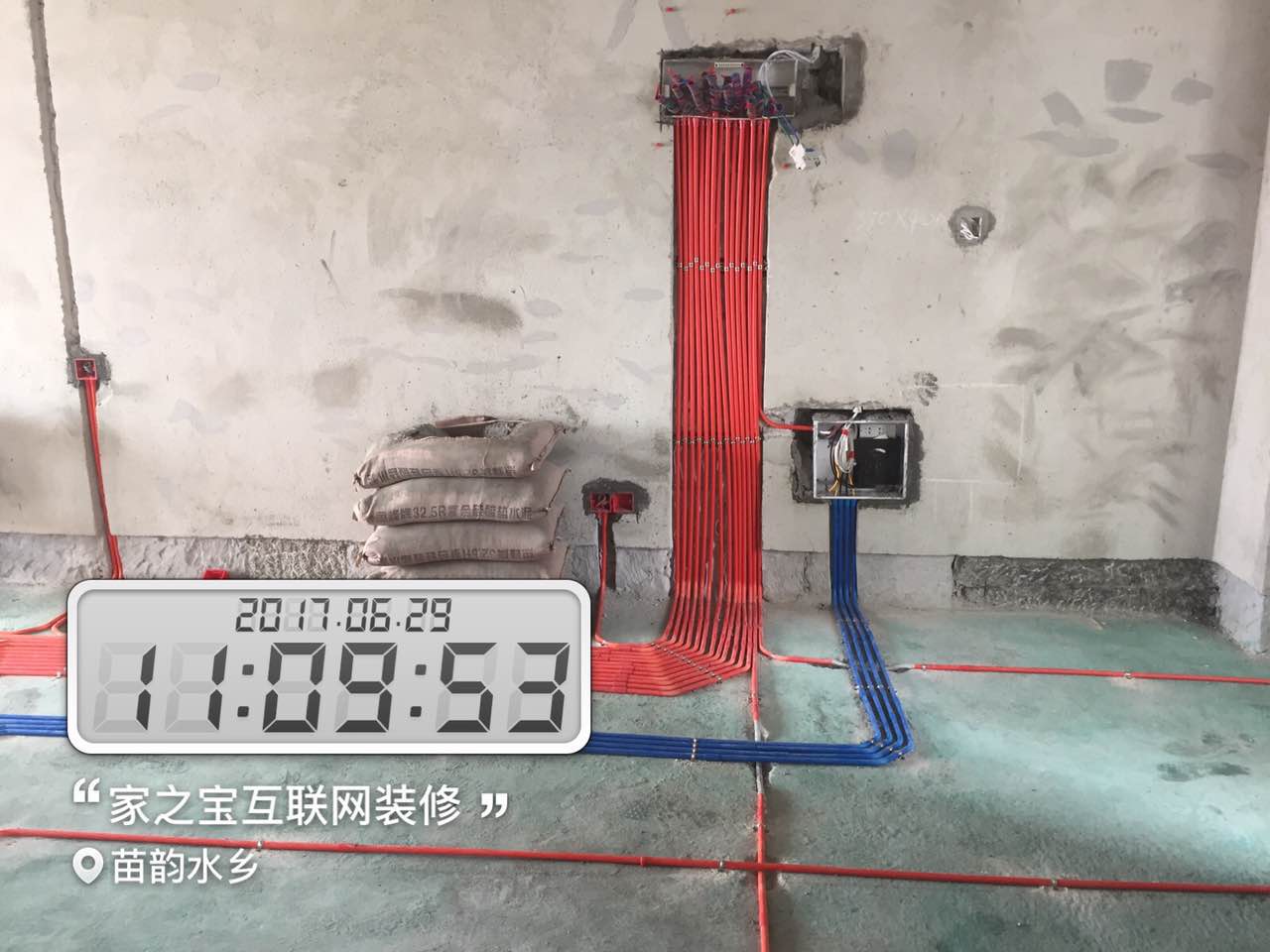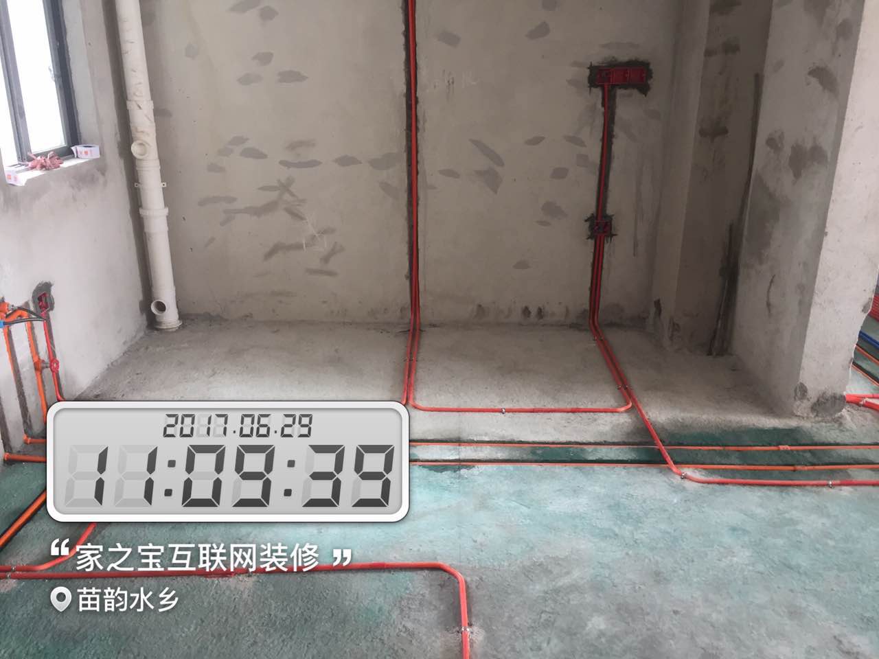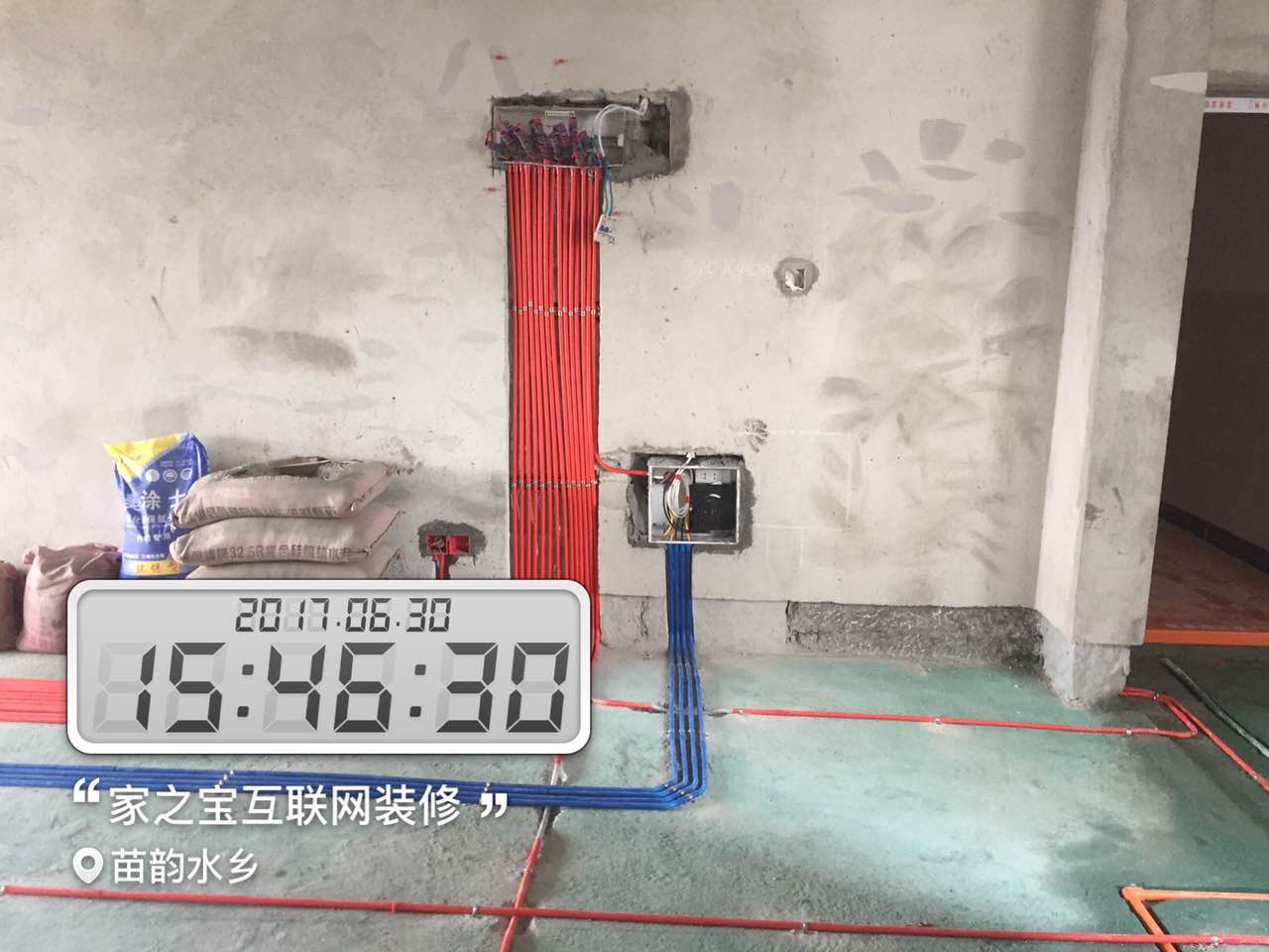 墻磚鋪貼,使用水平儀投射水平線,陽(yáng)角處采用磨邊45°碰角工藝。