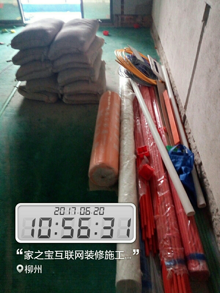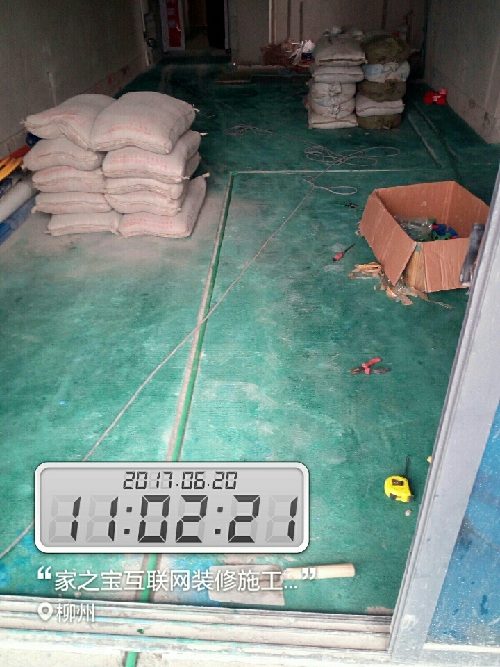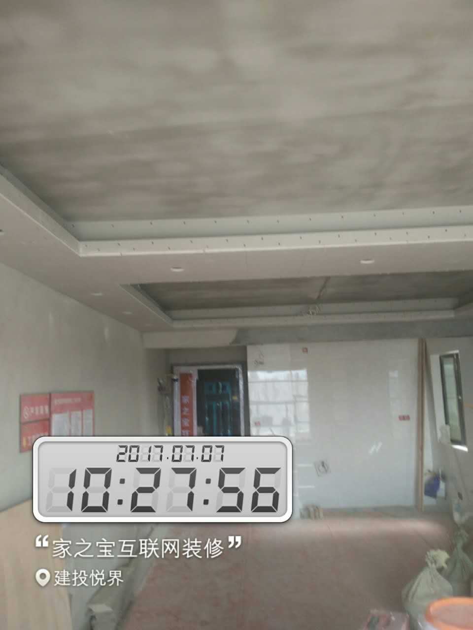 地面找平施工中,鋪地磚和吊頂施工完畢