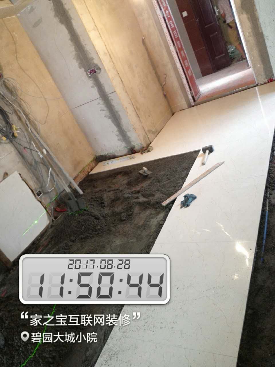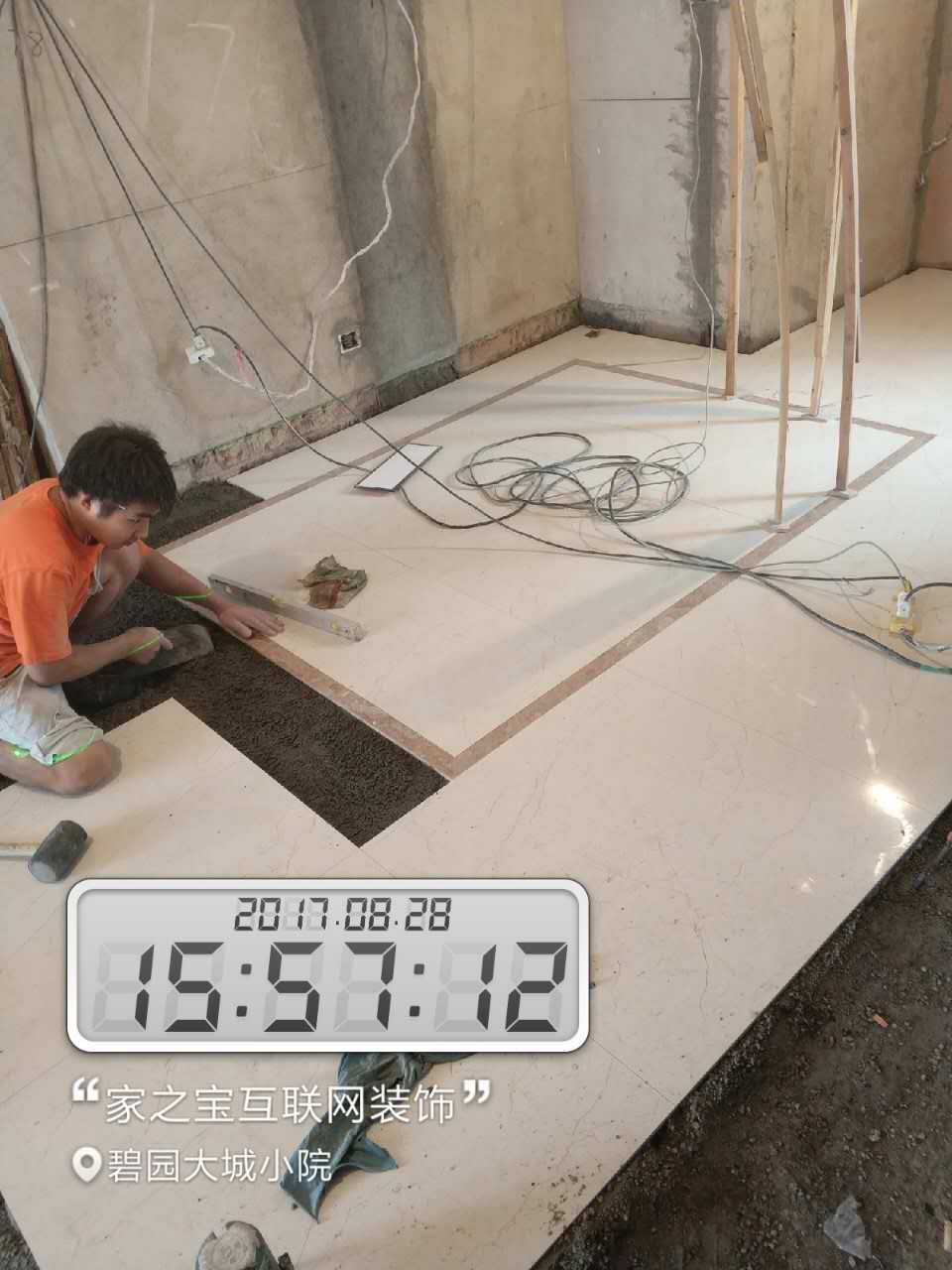 瓦工施工,平整對(duì)縫,鋪貼完畢即刻進(jìn)行成品保護(hù),鋪好地膜。