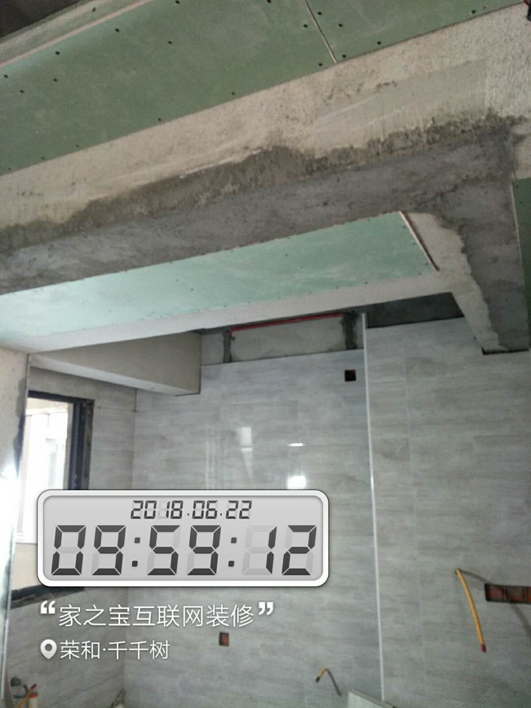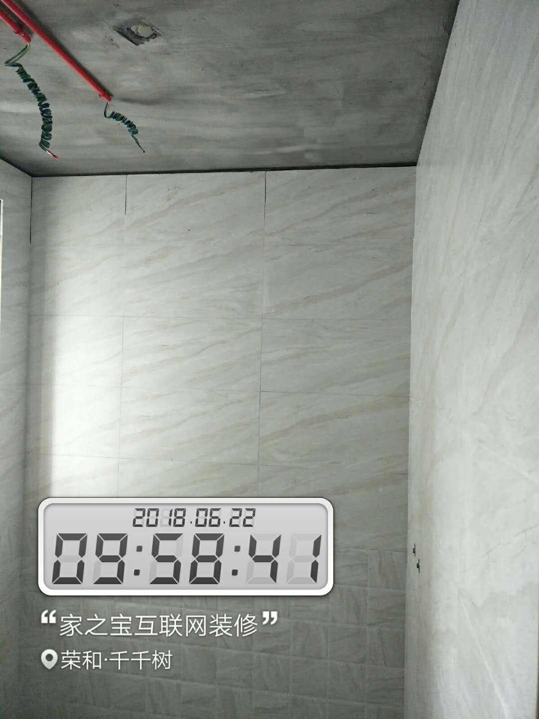 墻磚鋪貼,使用水平儀投射水平線,陽(yáng)角處采用磨邊45°碰角工藝。